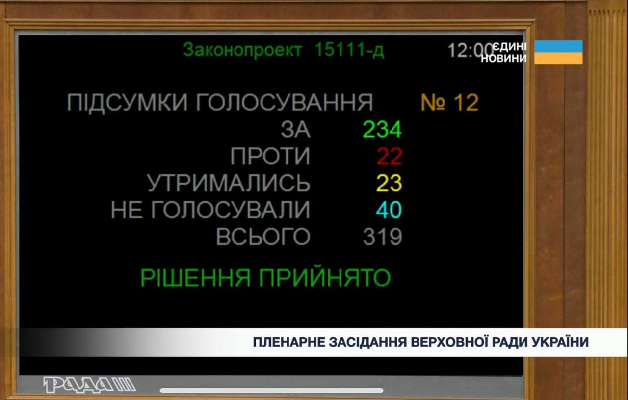 Проєкт за основу підтримали 234 народних депутати.